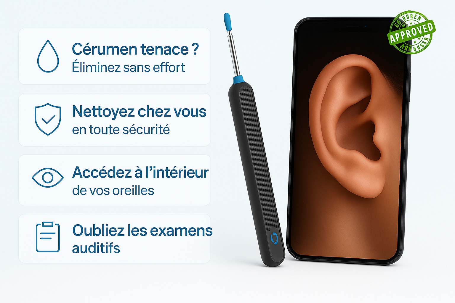 Chez AudiPro, la sécurité passe avant tout. C’est pourquoi notre appareil est recommandé par des professionnels de santé pour un usage domestique, en complément d’une bonne hygiène auriculaire. Il est équipé d’embouts souples en silicone médical, conçus pour respecter la sensibilité du conduit auditif, et permet un nettoyage visuel, précis et non invasif grâce à sa caméra HD. Contrairement aux coton-tiges, qui peuvent tasser le cérumen, cet appareil permet une extraction contrôlée, réduisant les risques de blessures. Bien sûr, en cas de pathologie ORL connue, l’avis de votre médecin reste essentiel.